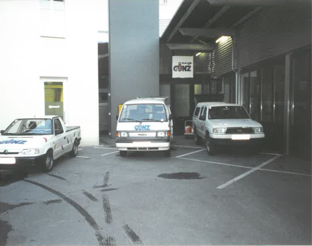 Über die Jahre entwickelte sich der kleine Handwerksbetrieb zu einem festen Namen in Dornbirn. 1995 erfolgte der Umzug in die Rhombergs Fabrik – auf dem Foto rechts ist ein Teil unserer damaligen Fahrzeugflotte zu sehen. 2008 übersiedelte die Firma schließlich in den Gewerbepark Am Kehlerpark 5 in Dornbirn, wo wir bis heute unseren Standort haben.
